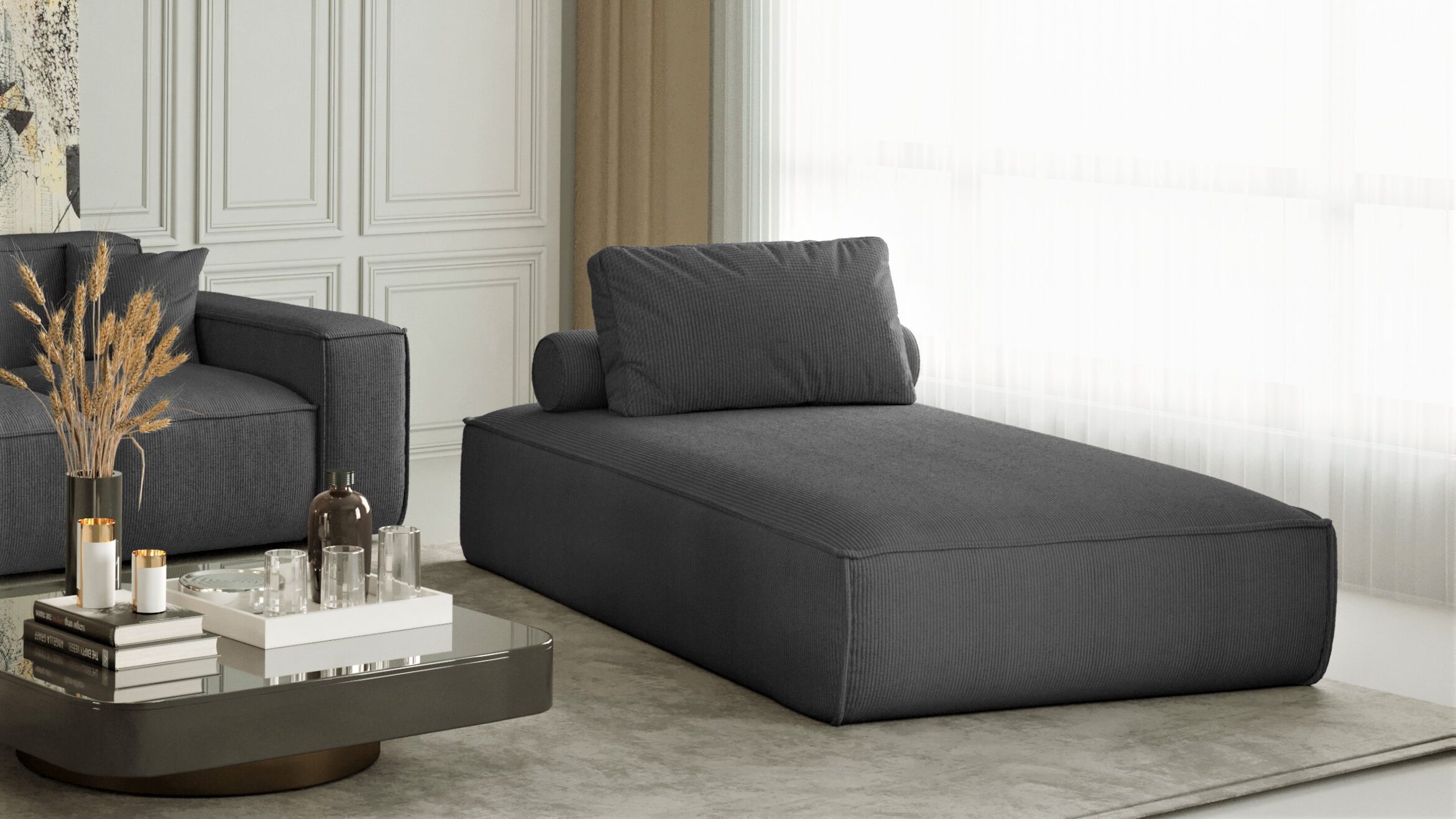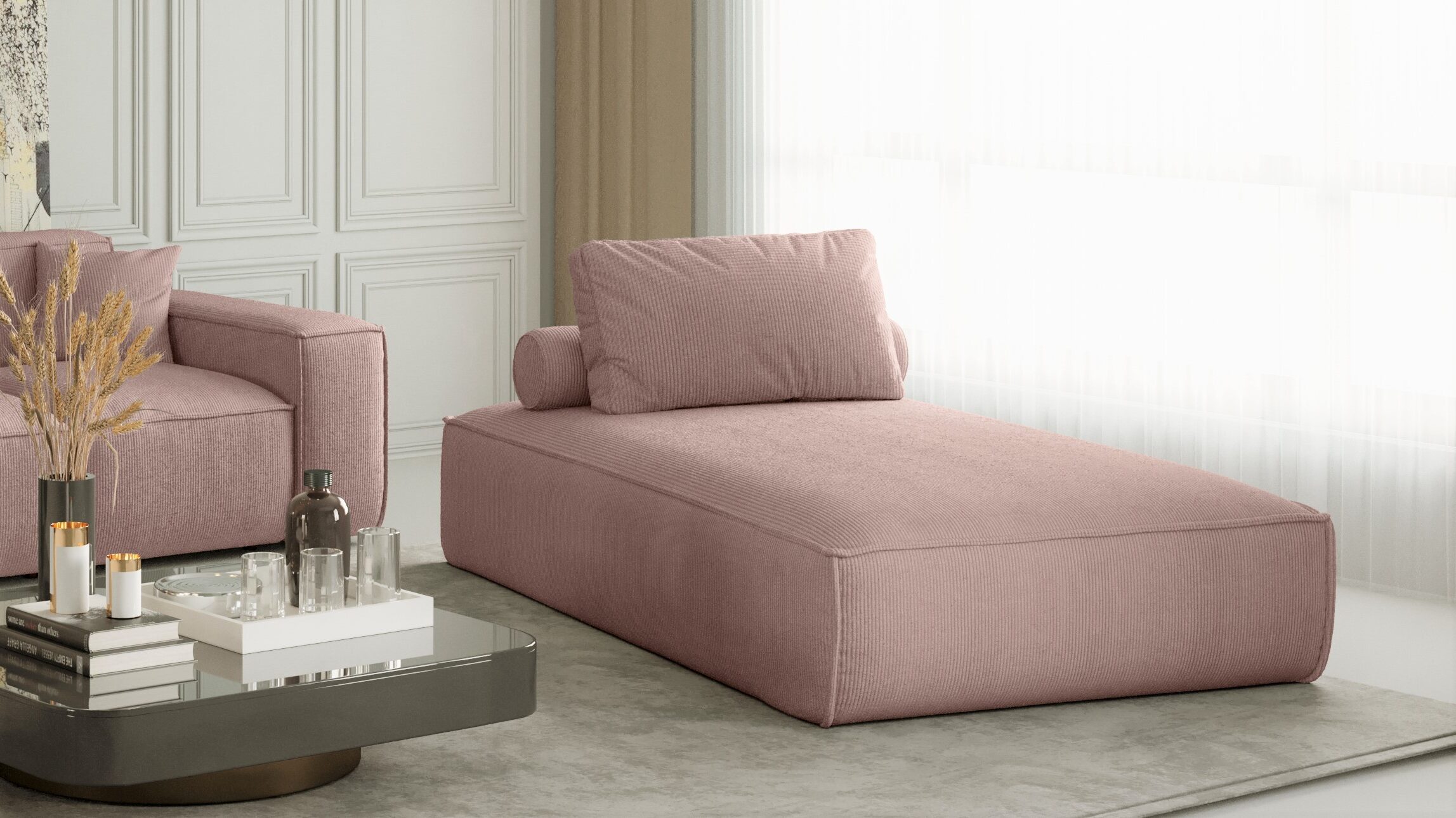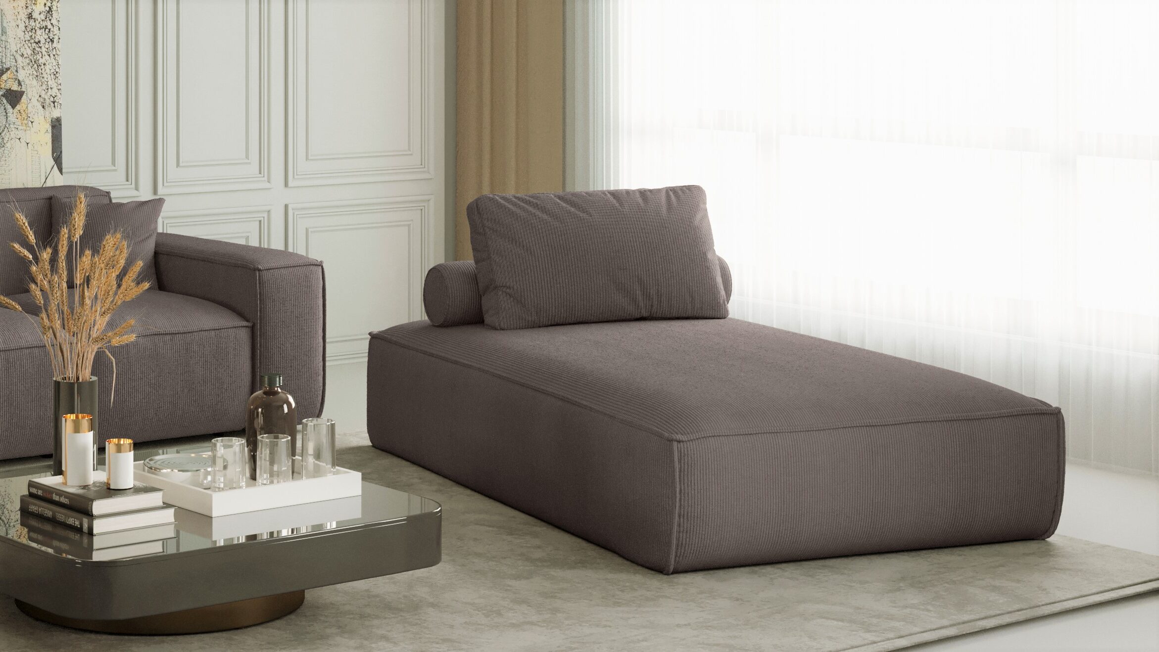 Das Sofa PULA Chaiselongue ist ein Designprodukt, das bequem ist, sich angenehm anfühlt und aus Materialien höchster Qualität besteht. Das Chaiselongue PULA erfüllt hohe ästhetische und qualitative Ansprüche. Das Sofa ist so konstruiert, dass es mitten im Raum stehen kann, da die Details der Verarbeitung sowohl von vorne als auch von hinten zu sehen sind.