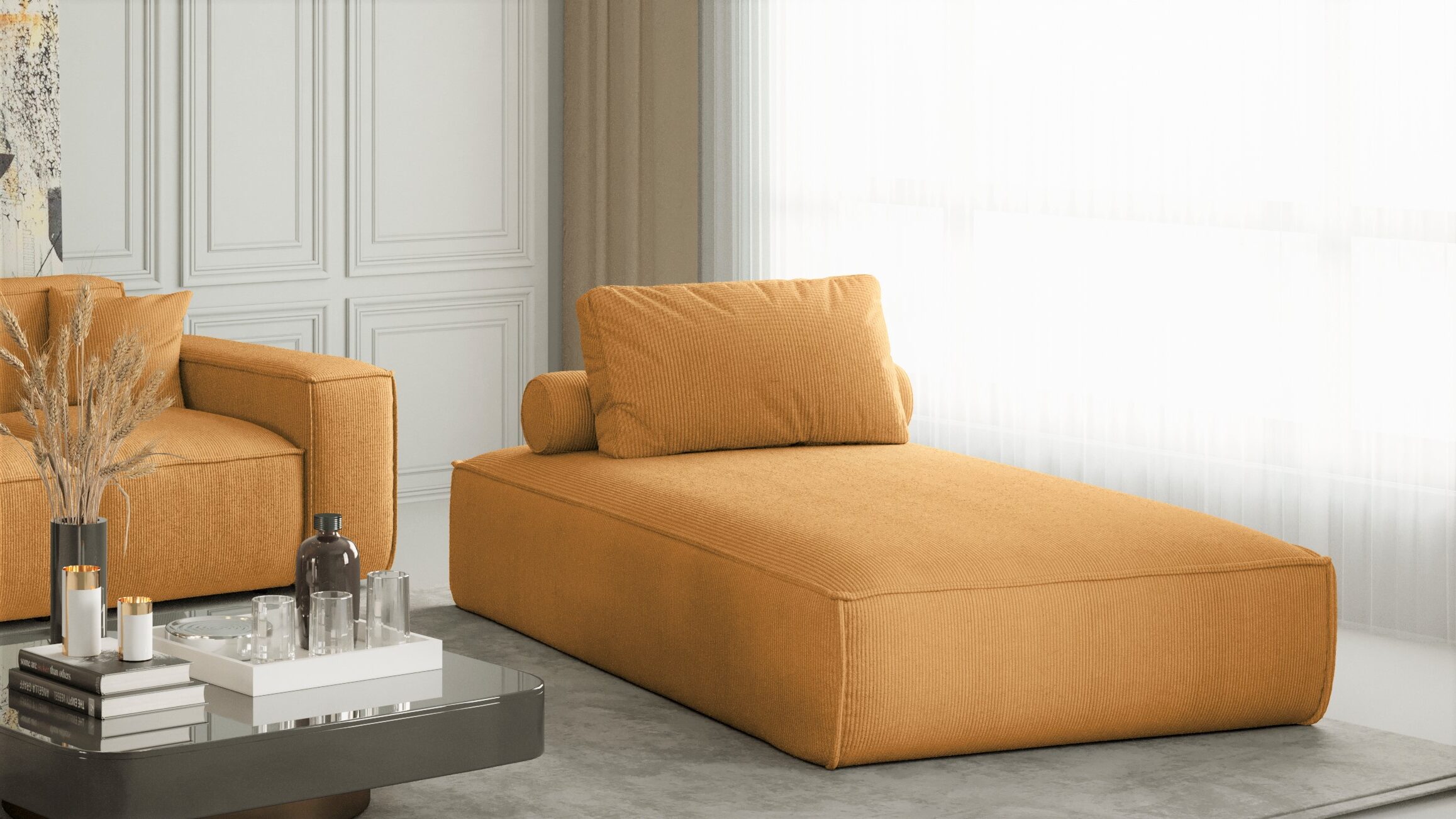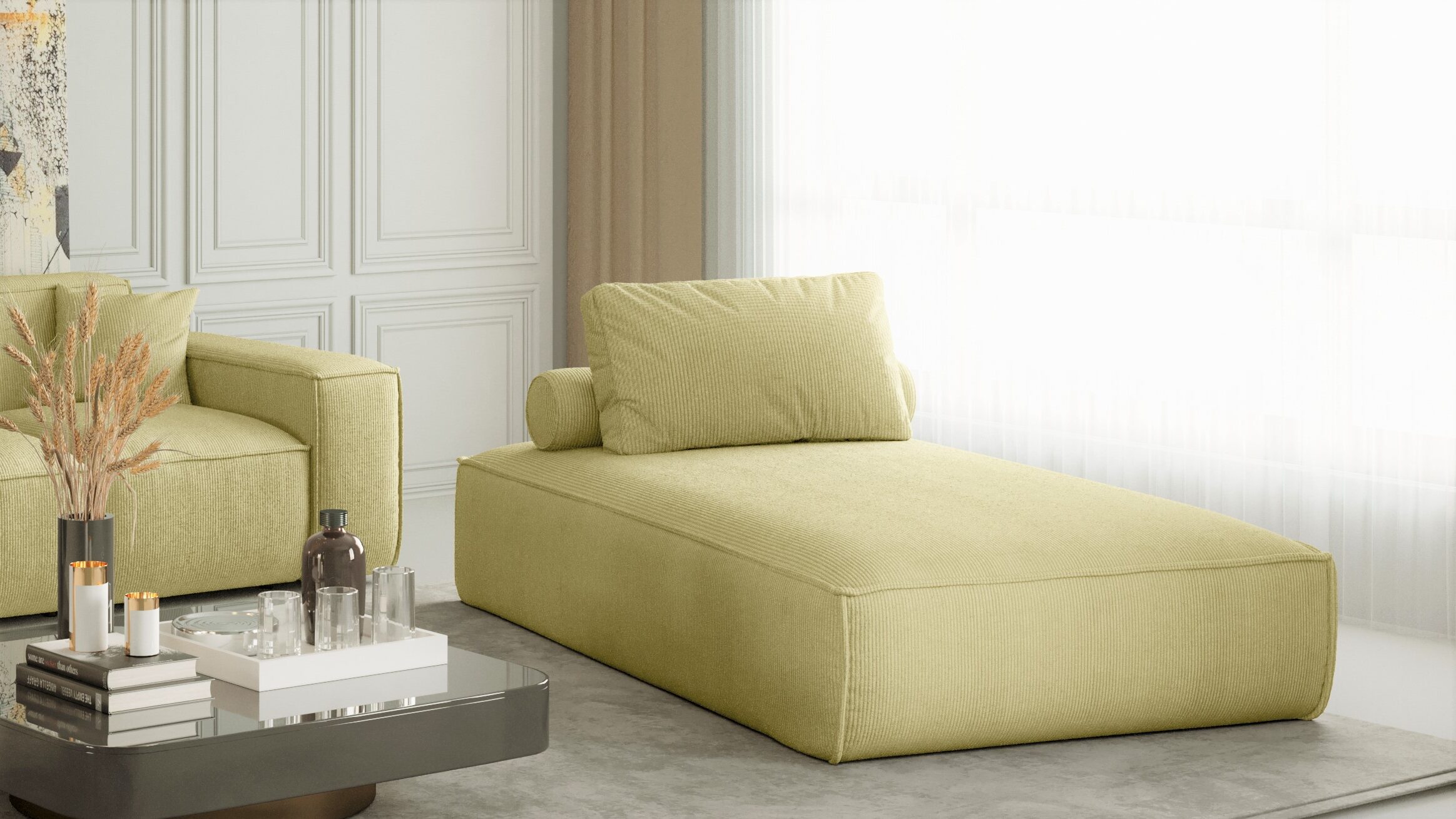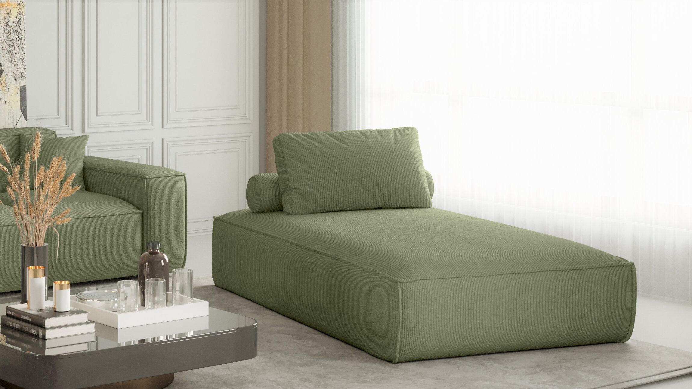 Das Sofa PULA Chaiselongue ist ein Designprodukt, das bequem ist, sich angenehm anfühlt und aus Materialien höchster Qualität besteht. Das Chaiselongue PULA erfüllt hohe ästhetische und qualitative Ansprüche. Das Sofa ist so konstruiert, dass es mitten im Raum stehen kann, da die Details der Verarbeitung sowohl von vorne als auch von hinten zu sehen sind.